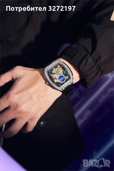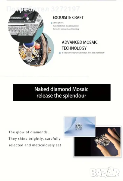 KUERST Луксозен Автоматичен Механичен Часовник, инкрустиран с малки изкуствени диаманти
