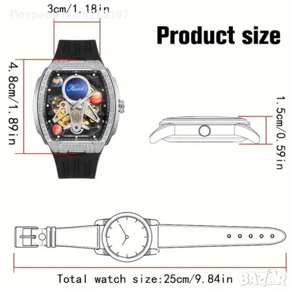 Кутията на часовника е инкрустирана с малки изкуствени диаманти