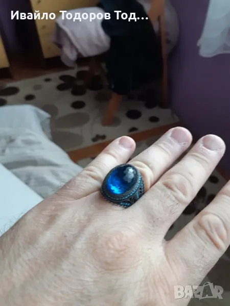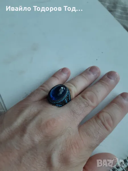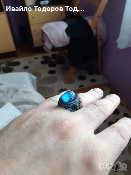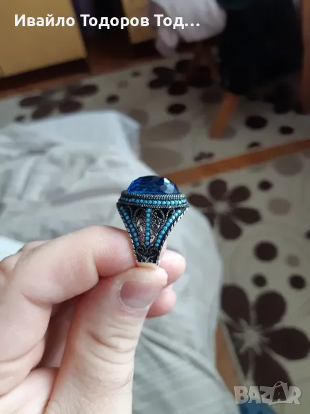 Бутиков сребърен пръстен ръчна изработка с голям аквамарин → Обява 48031132