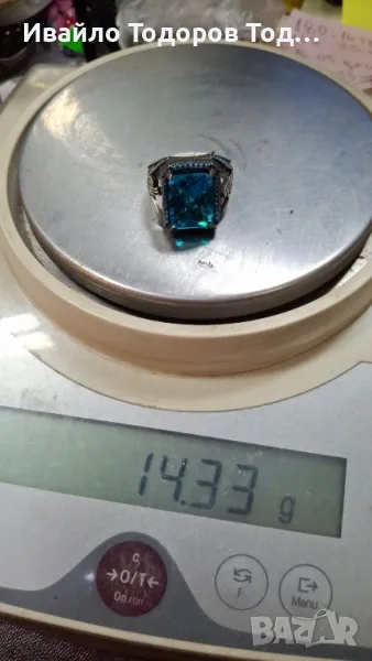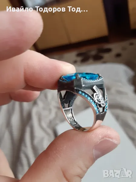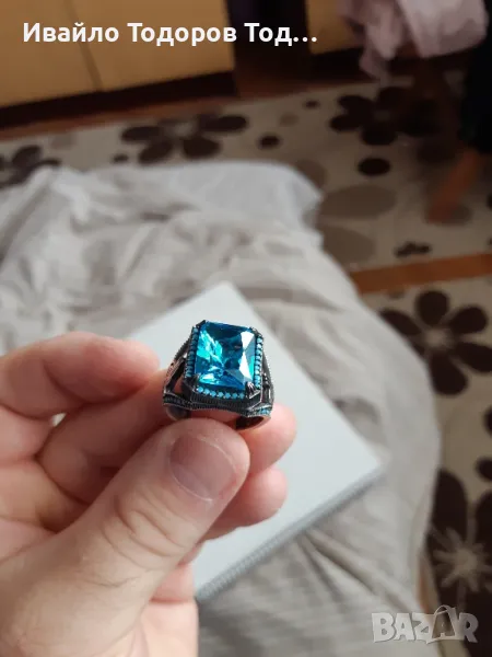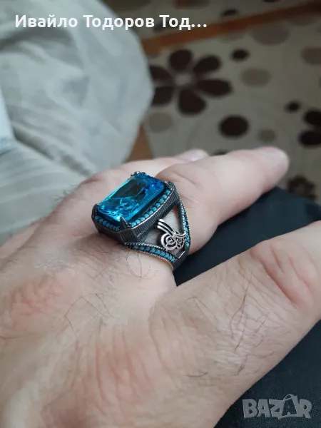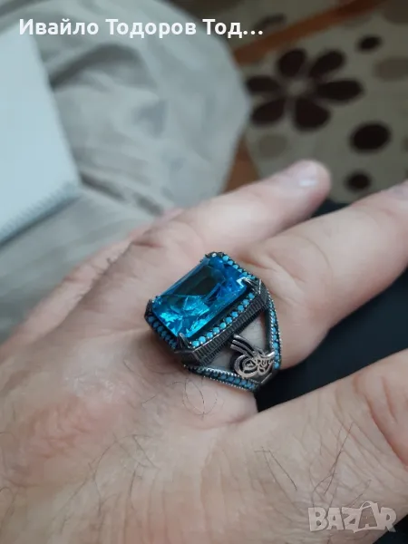 Мъжки бутиков сребърен пръстен с огромен аквамарин → Обява 48031562