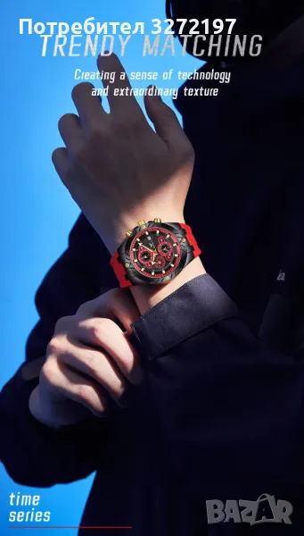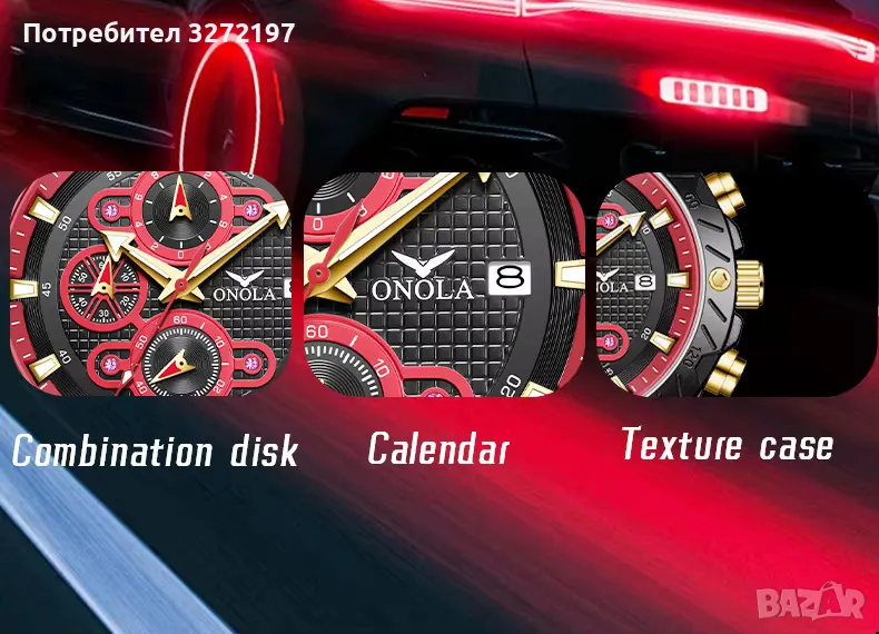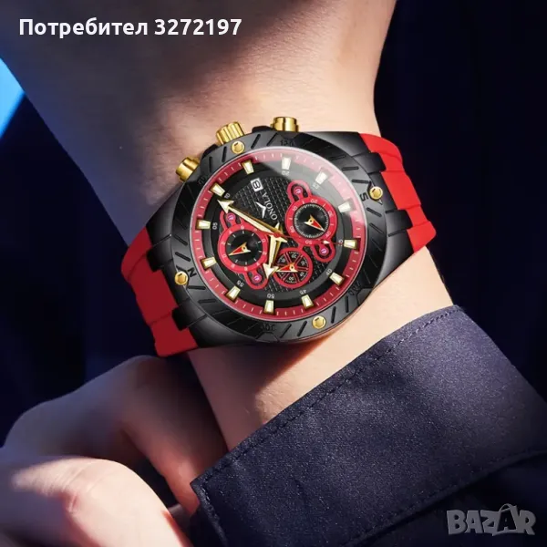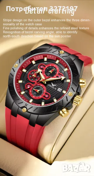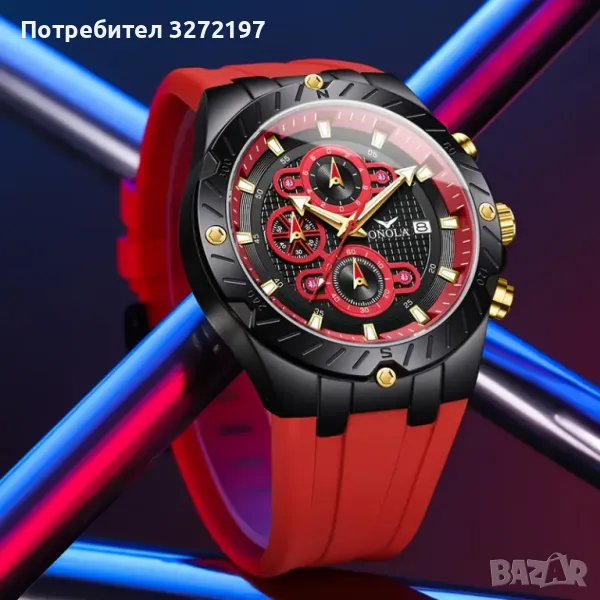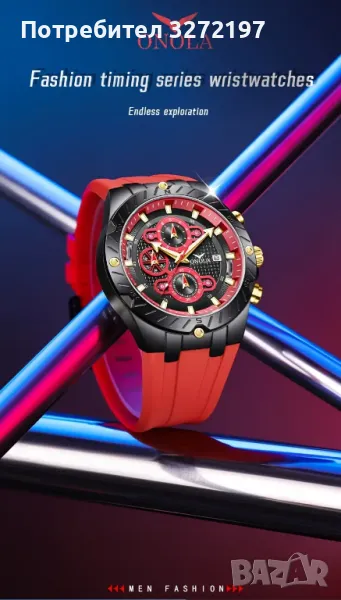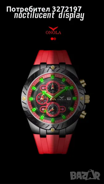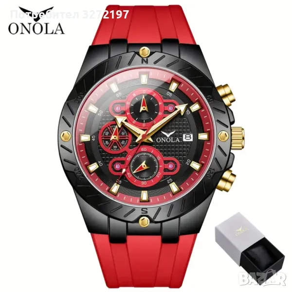 ONOLA кварцов часовник,хронограф,дата,водоустойчив 30 м , силиконова каишка,корпус от цинкова сплав, , неблагороден метал