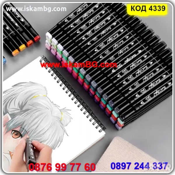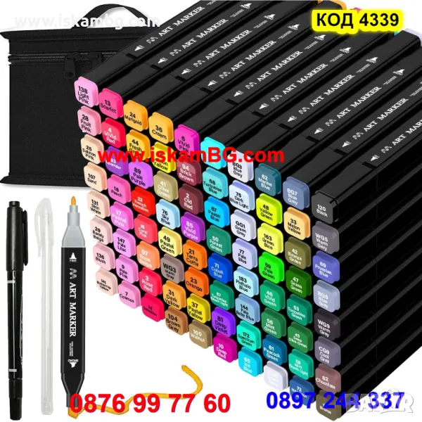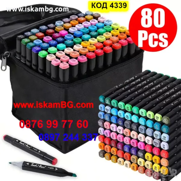 маркери за рисуване 80 броя, двойни, двустран, евтини маркери комплект 80 бр - КОД 4339