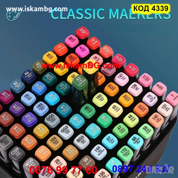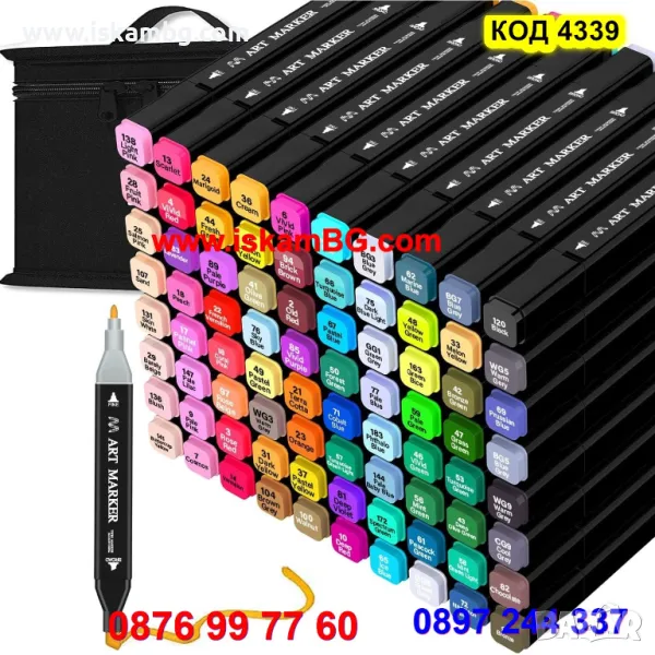 Двустранни алкохолни маркери за рисуване КОМПЛЕКТ 80 броя, за деца, подарък - КОД 4339