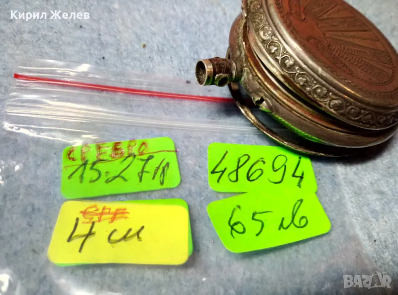 СРЕБЪРНА КАСА от Стар ДЖОБЕН ЧАСОВНИК ВИСОКА ПРОБА СРЕБРО с МАРКИРОВКИ РЪЧНО ОРНАМЕНТИРАНА 48694