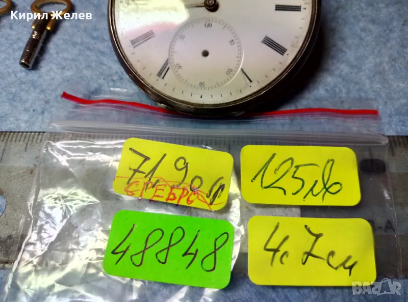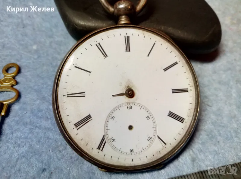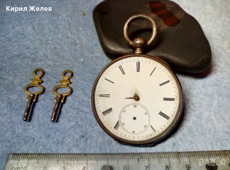 CYLINDRE DIX RUBIS Стар СРЕБЪРЕН ДЖОБЕН ЧАСОВНИК ВИСОКА ПРОБА СРЕБРО с БОНУС 2 КЛЮЧЕТА 48848