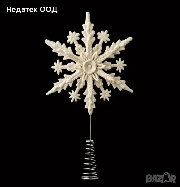 Връх за коледна елха, Снежинка, Бял, 23 см, снимка 1 - Декорация за дома - 48034903 Връх за коледна елха, Снежинка, Бял, 23 см, снимка 2 - Декорация за дома - 48034903 1/2
