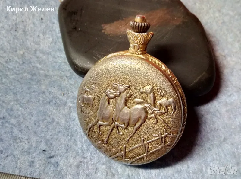 ВИНТИДЖ АРТ МОДЕЛ МЕХАНИЧЕН ДЖОБЕН ЧАСОВНИК с КОНЕ на КАПАКА и НУЖДА от ЦИФЕРБЛАТ и РЕМОНТ 48863