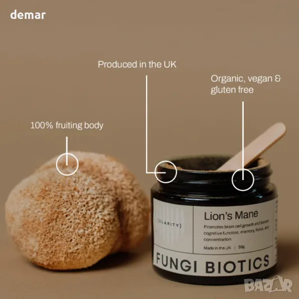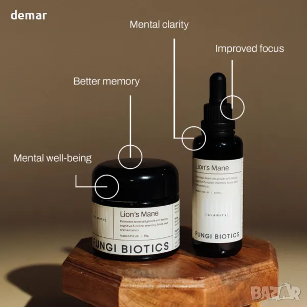 Тази веганска и безглутенова формула използва мощни плодни тела на гъбата лъвска грива, комбинирана с 25% алкохол и дестилирана вода, за подобряване на фокуса, паметта, умствената яснота и цялостното психическо благополучие. Опакован в бутилка от 50 ml с удобен капкомер, е предназначен за дневна доза от 2 ml.