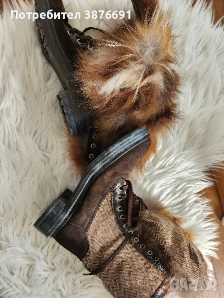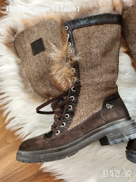 Дамски боти ботуши луксозен модел естествен косъм лисица естествен велур регулиране станат и на ботуши и на боти