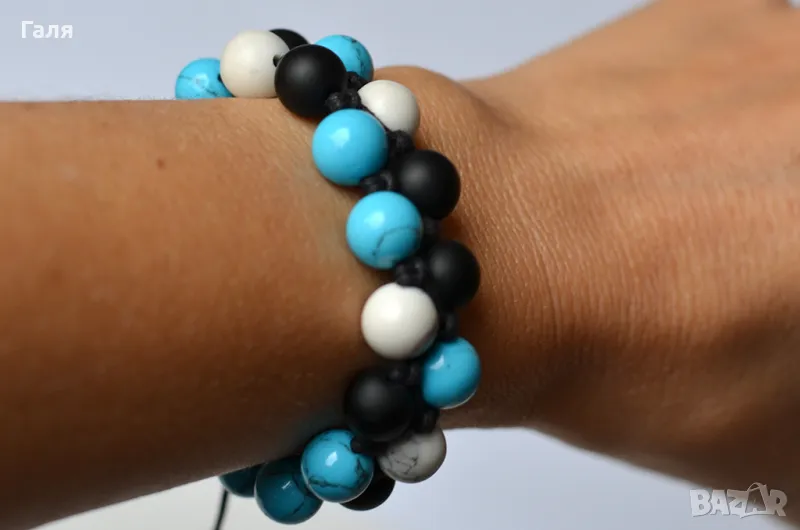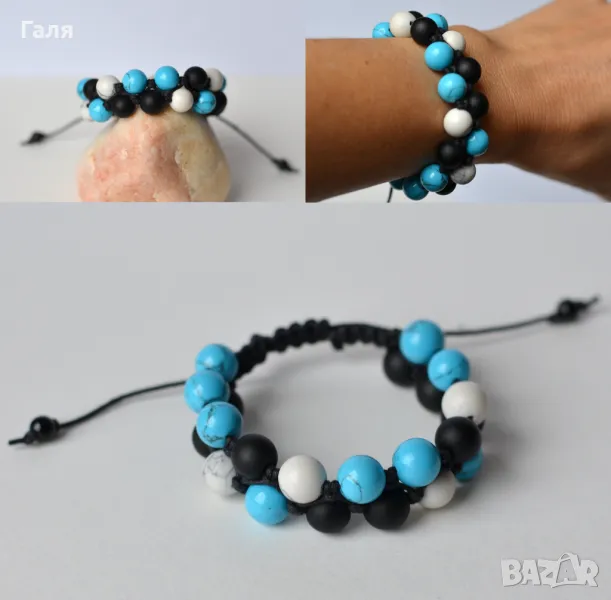 Авторска гривна ръчно изработена от оникс, хаулит, тюркоаз 10 мм, ахат и шнур.