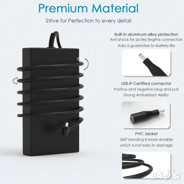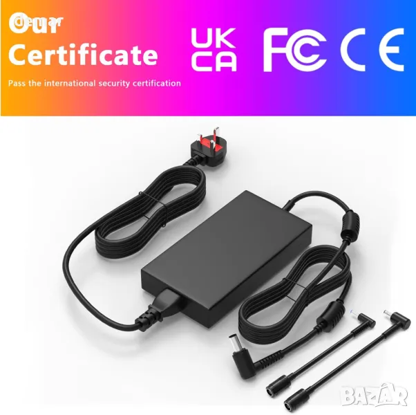 Съвместимо с различни лаптопи за игри на MSI, това зарядно устройство от 180 W включва интерфейс 7,4*5,0 mm и два допълнителни накрайника (5,5*2,5 mm и 4,5*3,0 mm) за поддръжка на модели, изискващи 120 W, 135 W, 150 W и 180 W мощност. Той разполага с универсален вход за напрежение (100-240V) и осигурява 19,5V/9,23A изход. Създаден със сертификати CE, FCC, CCC и UL, той предлага предпазни мерки като свръхнапрежение, свръхток и късо съединение за надеждна работа. Проектиран за издръжливост, той разширява използваемостта в множество модели лаптопи.