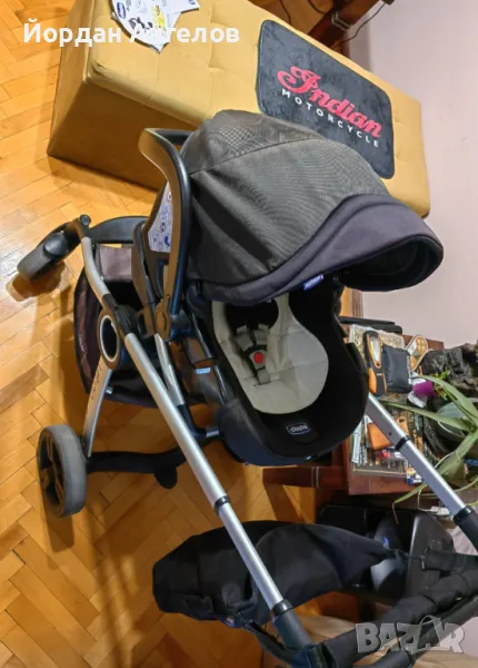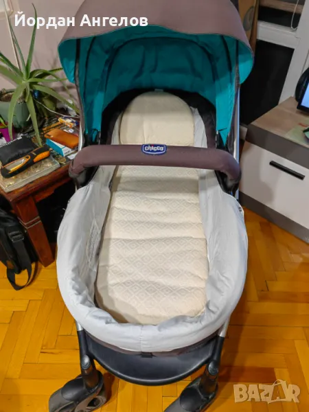 Количката е закупена нова преди 5 години. Към нея даваме столче (кошница) Chicco плюс платформа за монтаж върху автомобилна седалка плюс рама за монтиране на кошницата в количката с лице към майката или с лице напред. Няколко пъти ползвано матраче за леглото на количката и допълнителна мека подложка за столчето (кошницата) + две чанти Chicco. Количката е изключително лека и маневрена. Всичко е в оригиналните си кашони и опаковки. Има нормални следи от употреба.
