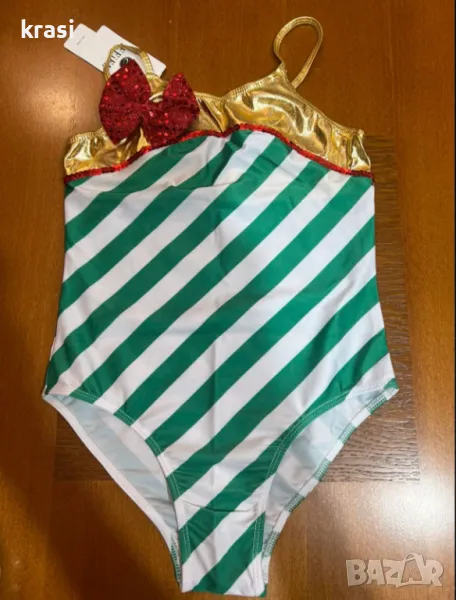 НОВА уникална и атрактивна коледна рокля с пухче и панделка (с гащи), коледен костюм, празнична дреха за парти - 70 лв