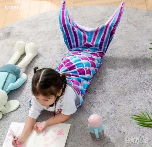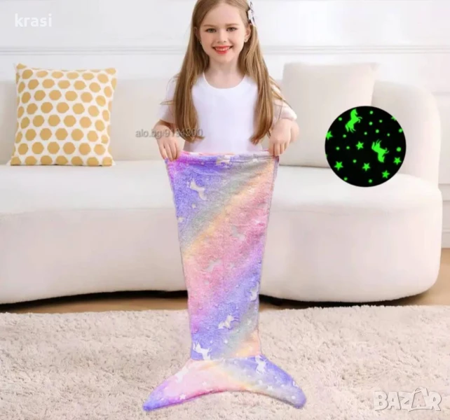 НОВО! Детско мекичко одеяло ”Русалка” - СВЕТЕЩО В ТЪМНОТО, Перфектен подарък за Коледа, рожден ден - 55 лв (Важно: За да свети одеялото, трябва да се сложи на слънце или светлина за 12 часа!!!)