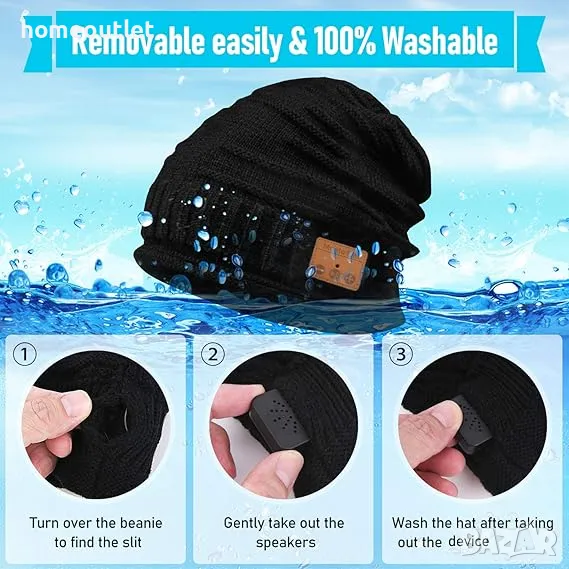 Когато се наложи изпиране, можете да извадите говорителите от джобчетата на шапката преди пране.