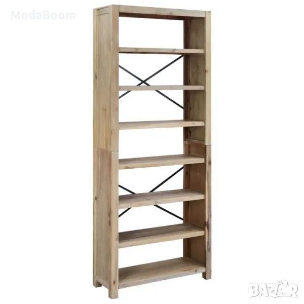 Библиотека със 7 рафта, 80x30x200 см, акациево дърво масив