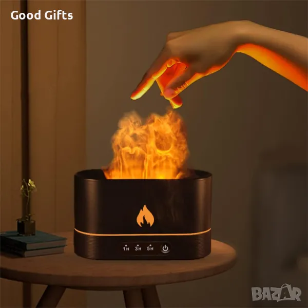 Арома дифузер - Отпуснете се, успокойте, успокойте се и се насладете на живота си максимално с нашия ароматен дифузера, който е експертно изработен с помощта на висококачествен PP материал, процес на покритие с бутони и използва интелигентни LED светлини, комбинирани с ефект на овлажнител на пламък, за да създаде реалистичен атмосфера на пламъка.