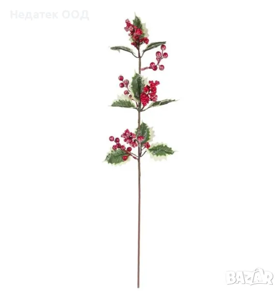 Коледна клонка с дълго стъбло, снежен имел със зелени листа и червени плодове.Комбинирайте еднакви или различни цветове в буркан за ярка празнична коледна нотка на разкрасяване и декорация!
