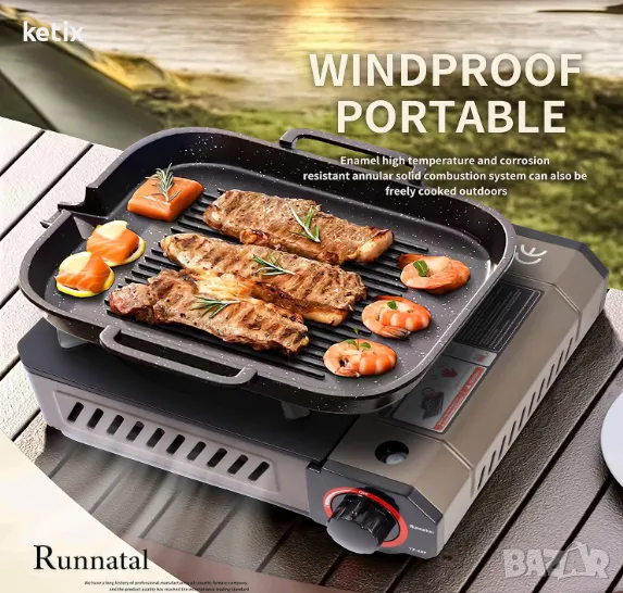 Лек и лесен за носене - Преносим газов котлон за къмпинг: 31*26,2*8 см, тегло: 1,45 кг, малък размер, не заема място за съхранение, много подходящ за семейни вечери, къмпинг на открито, RV.