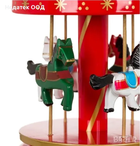Коледна музикална въртележка червена с 4 коня и нежна музика.Нашето коледно селище се разраства! Идват нови изпълнения, които обогатяват образа и допълват празничната атмосфера. Всичко намира своето място във вашия дом!