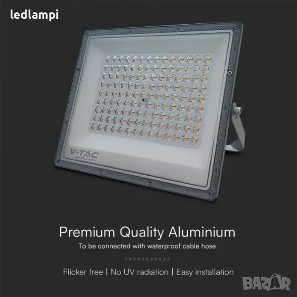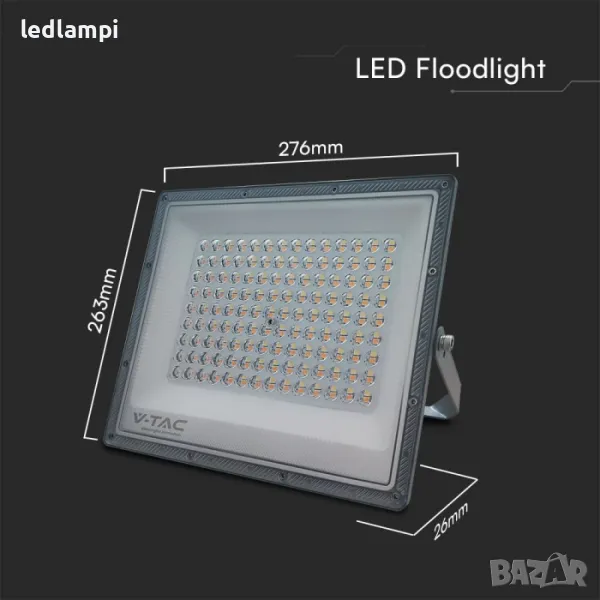 LED Прожектор Мощност: 100W Работно напрежение: 220-240V;50/60Hz LED Чип: SMD Цвят на корпуса: Сив Материал: Aluminium Степен на защита: IP65 Светлинен поток: 8 150 lm Ъгъл на светене: 90° Полезен живот: 25 000 часа Цвят на светлината: По избор - 3000/4000/6500К Работна среда: от -20° до +45°C Брой включвания и изключвания: >10 000 пъти Димиране: Не Енергиен клас: F CRI: > 80 PF: > 0,9 Размери: 274 x 26 x 262mm Тегло: 0.97 кг.