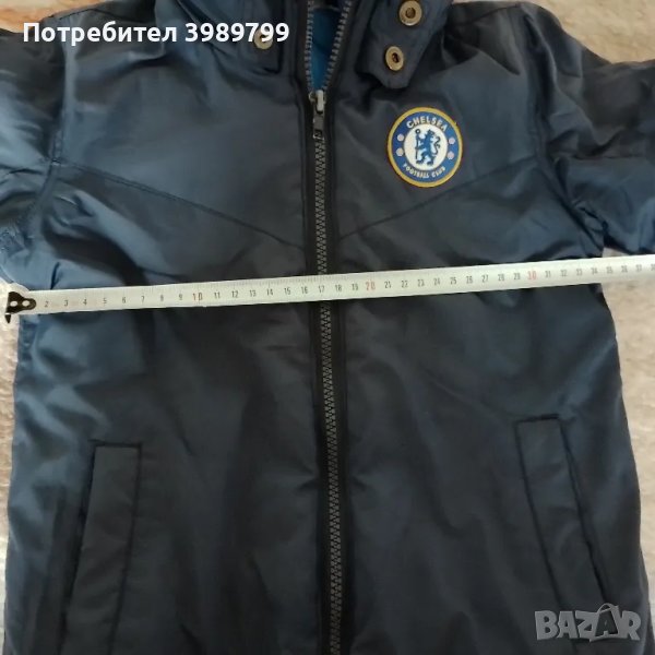 Зимно яке за 2-3г момче, с голяма яка, качулка и емблемата на футболен клуб Chelsea.