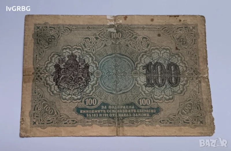 100 лева 1916 Царство България Българска банкнота от периода на Първата световна война → Обява 48040651