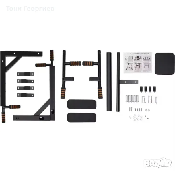 Към комплекта има 4 броя планки с дюбели и болтове, който се захващат на стената, както и всичко необходимо за сглабянето му. След това само завъртате уреда.