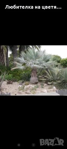 Семената са пресни,обелени и изсушени и готови за засаждане . Вижда се как изглежда като голяма палмата като голямо растение издържа до -10,-12 градуса. Цената е 2 евро , семената са изпробвани и всичко си излиза ,но изисква време от 7-8 месеца до година ,много е важно поливането ,почвата ,за повече бройки от 50 бр нагоре давам и инструкции за гледане.