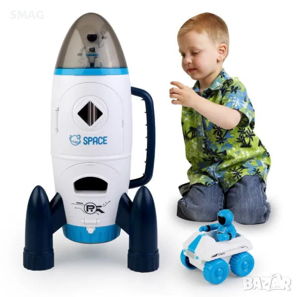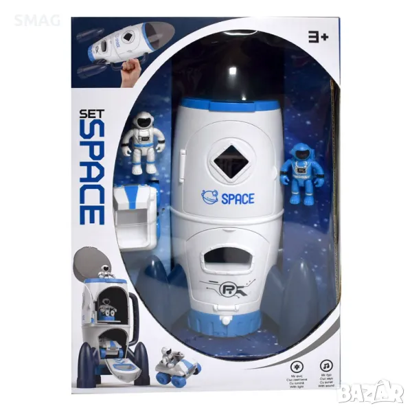 Космически комплект, включващ космически кораб с отварящи се врати, превозно средство и 2 фигури на екипаж на мисия за изследване на космоса. Работи с 2 батерии АА (не са включени).