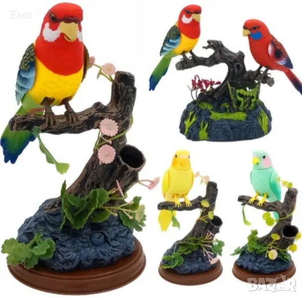 Пластмасова играчка. Музикални папагали кацнали на дръвче