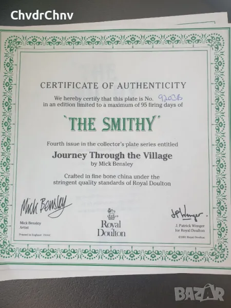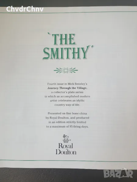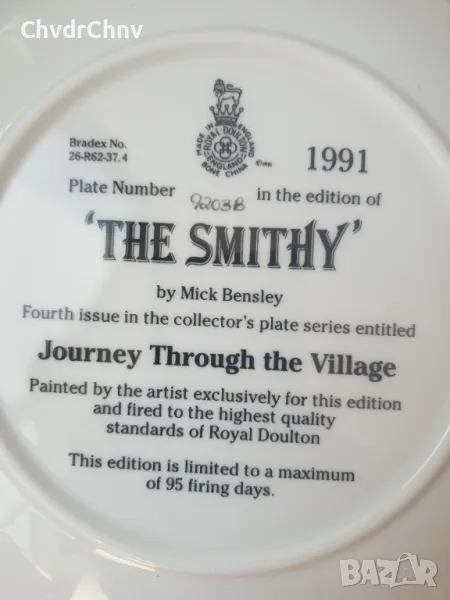 (Royal Doulton Smithy) Чинията е нова, със сертификат (последната снимка), в оригиналната кутия, темата е "The Smithy". Производство Англия 1991 г.