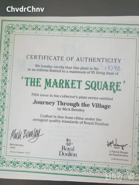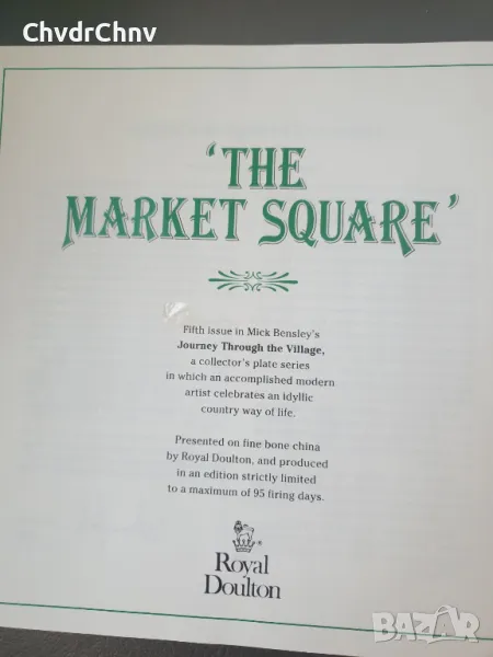 (Royal Doulton Market Square) Чинията е нова, със сертификат (последната снимка), в оригиналната кутия, темата е "The Market Square".