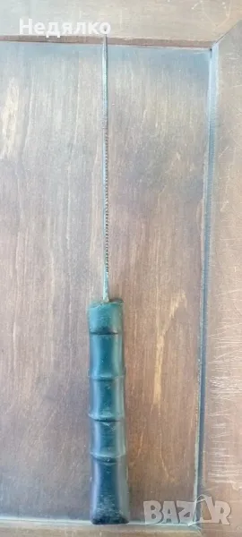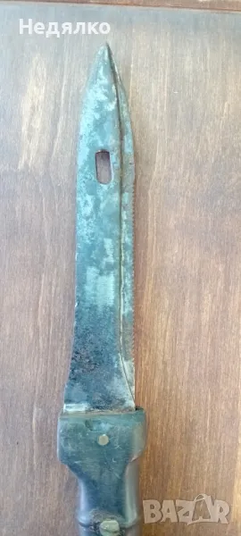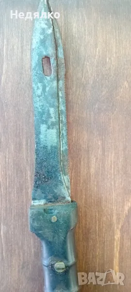 Рядка,автентична находка,маркировка - "10" на горна част на дръжката,така се е наричал военния завод Арсенал,Казанлък,завод 10,от 1947 до 1966г,първият автомат Калашников е произведен през 1958г.Повече на телефона,за сериозни.28 см дължина,15,5см само острието.