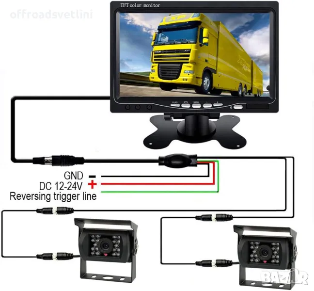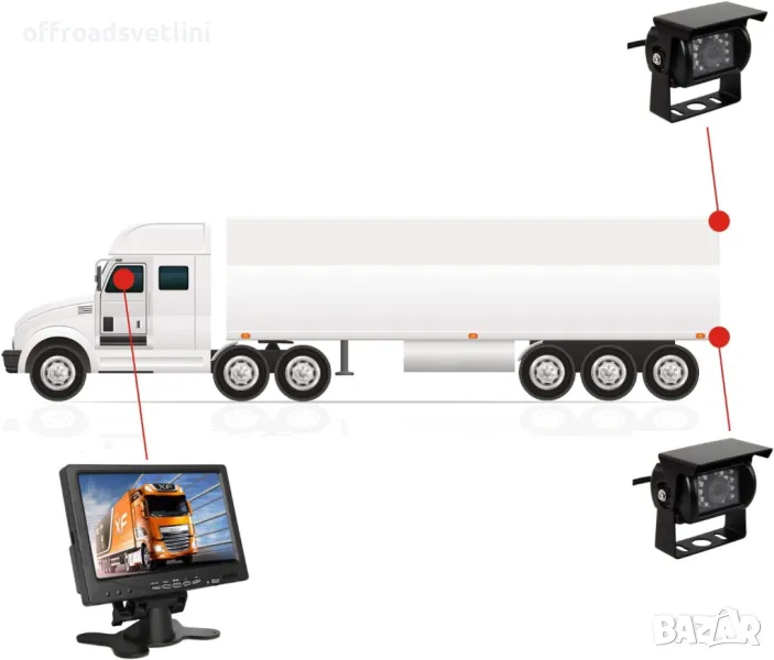 Система за задно виждане с 2 камери и монитор за Камиони Бусове Каравани