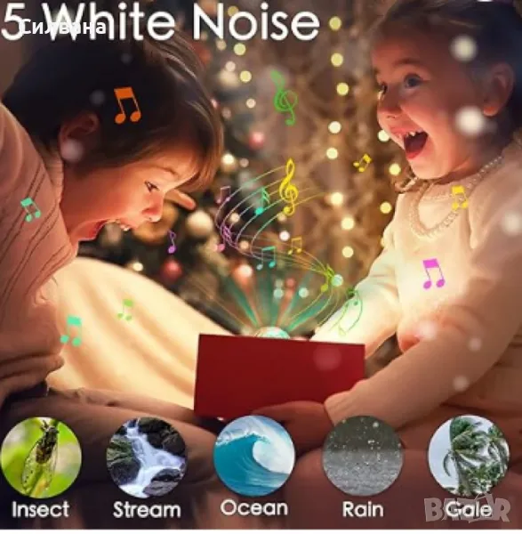 Този компактен и стилен проектор съчетава красотата на северното сияние и звездното небе с успокояващ бял шум, за да създаде уникална и релаксираща атмосфера.