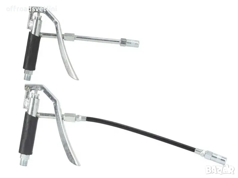 Крачна мобилна помпа за гресиране с гъвкав маркуч с дължина 4 метра, крачен механизъм и стандартни накрайници.
