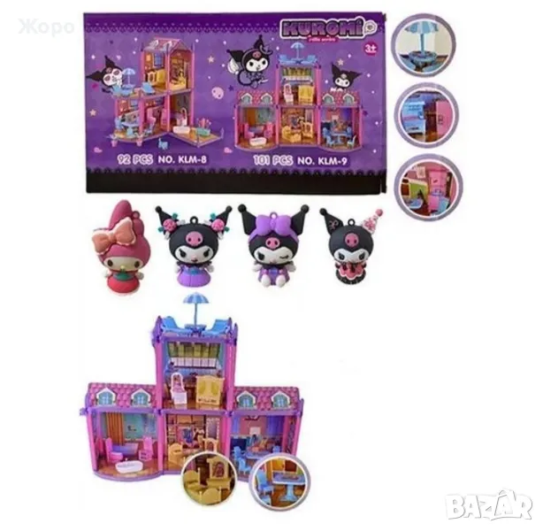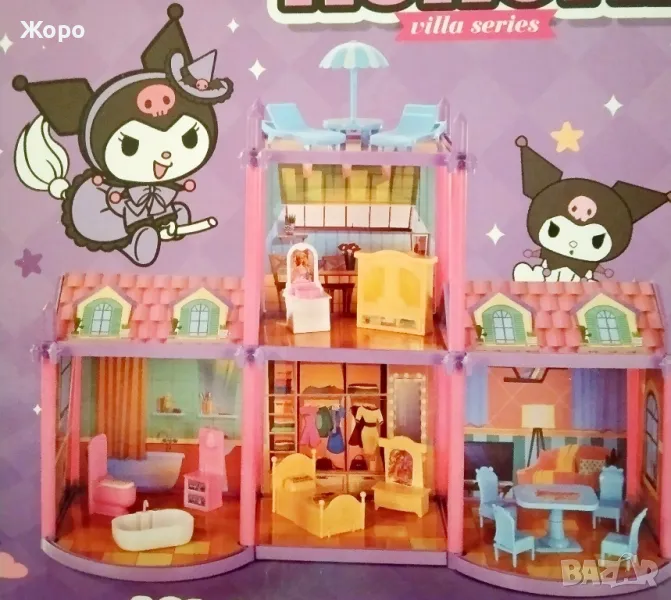 Къщата на Коруми с мебели 101 елемента - на 2 нива, 4 стаи и 2 балкона и градина ще направи времето за игра на момичетата напълно незабравимо и забавно! Събудете въображението на децата и ги зарадвайте! Оборудван е с мебели и помага за декорирането на пространството, а невероятни предмети - от спалнята, всекидневна ,баня и тоалетна , кухня ,детска стая и летен шезлонг и чадър и други . правят играта реалистична. Те определят настройките до малки герои– помагайки за разпространението на реалистична игра. Към къщата получавате пълно обзавеждане и 4-фигури на Коруми