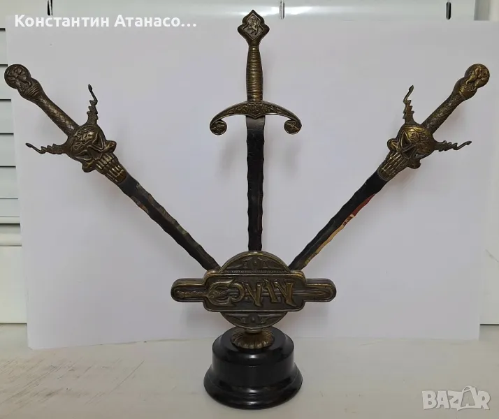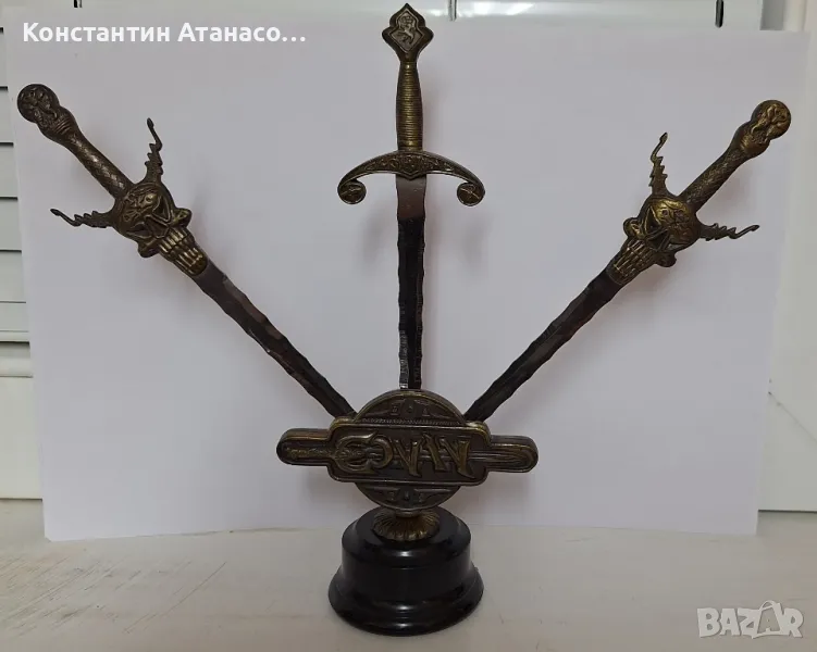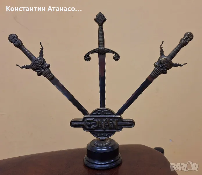 Стар бронзов сувенир с мечове КОНАН. Мечовете се вадят! цена40лв.