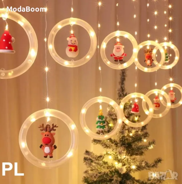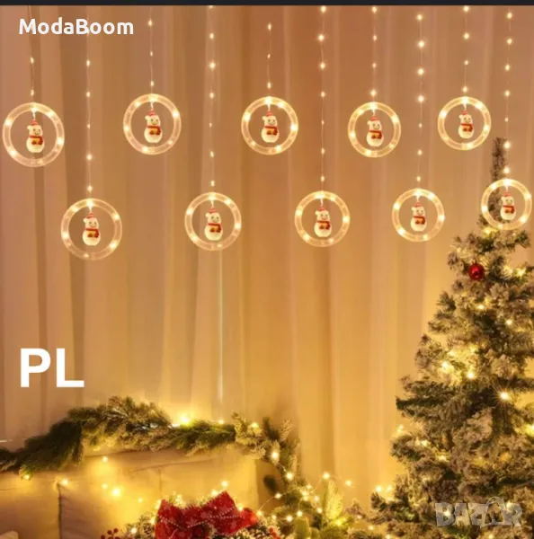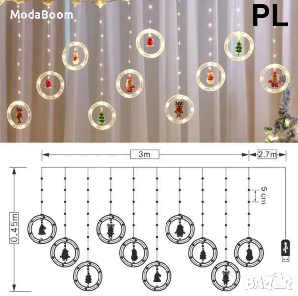 Коледна светлинна завеса, LED крушки Дядо Коледа, разтегателна, FH-21, дължина 3 м, топла светлина със слот за флашка и удължаване
