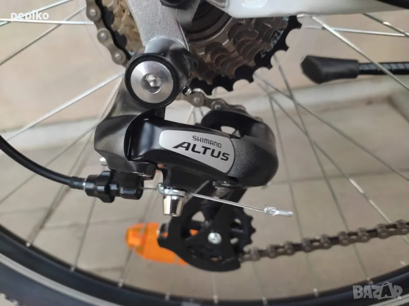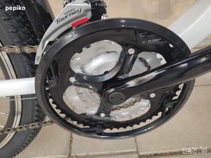 НОВ алуминиев градски велосипед SAVENO MAGNOLIA 27,5 цола,алуминиева рамка 27,5 цола с 21 скорости,фиксирани палцови комбинирани превключватели SHIMANO 3 х 7,средно движение касета,алуминиеви курбели,пластмасови педали,пластмасови калници,алуминиев багажник,удобна седалка на релси,алуминиево амортисьорно колче ZOOM,алуминиева раздвижна лапа на горе и на долу,алуминиево кормило,ергономични грипове,преден алуминиев амортисьор ZOOM регулиращ се,заключващ се,предна и задна алуминиеви вибрейк спирачки,преден отклонител SHIMANO,заден отклонител SHIMANO ALTUS,задни венци SHIMANO MF-TZ500,предна и задна алуминиеви главини ASESS,алуминиеви двойностенни усилени капли,никелирани спици,гуми с безшумен грайфер MITTAS 27,5 х 2,10,осветление от пред и от зад електронно,размер на рамката 43 х 58 см.тегло 17,5 кг.