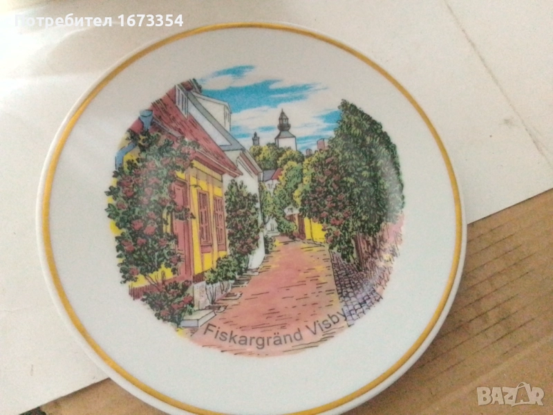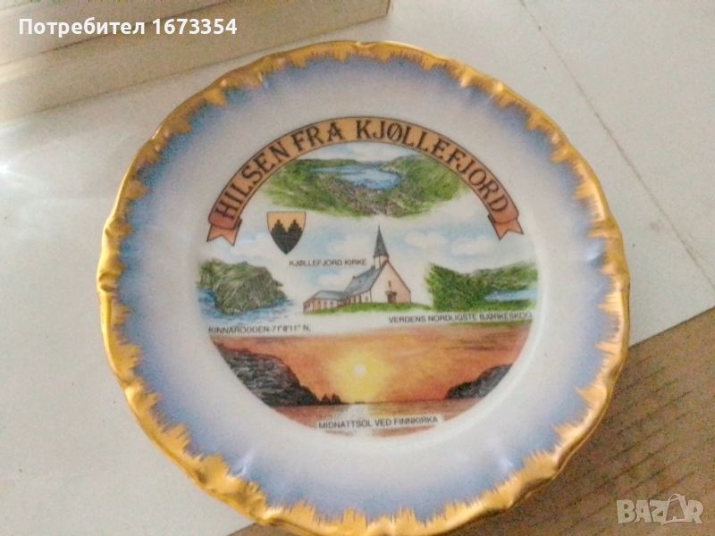 3) Норвежка чиния със златен кант рядка интересна оригинална изработка см. Номер 5 диаметър 20 см.Цена 15.00 лв