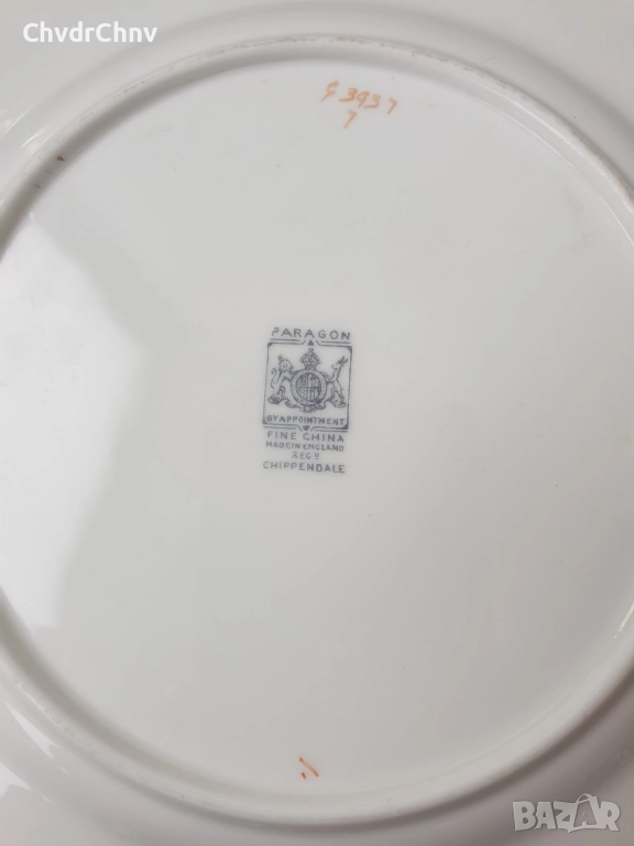 (ЧИНИЯ 3 / Paragon Chippendale/ПАРАГОН) Диаметър 25 см, с 22К злато, маркировка/печат отдолу, в отлично състояние (без драскотини). Производство Англия 1950-те