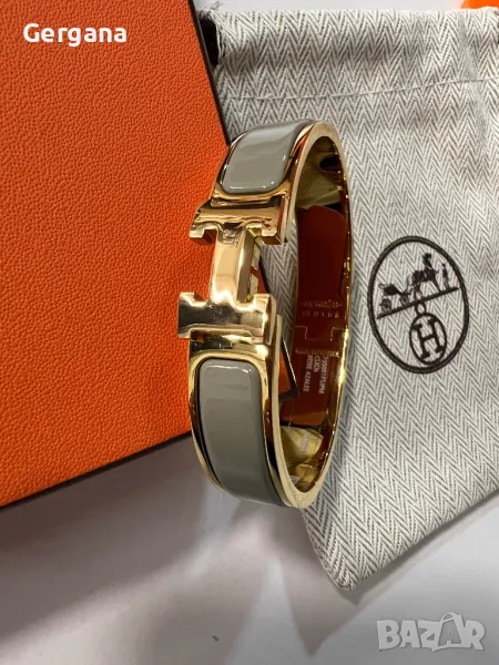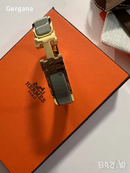 Красива позлатена гривна Hermes със сив кант.