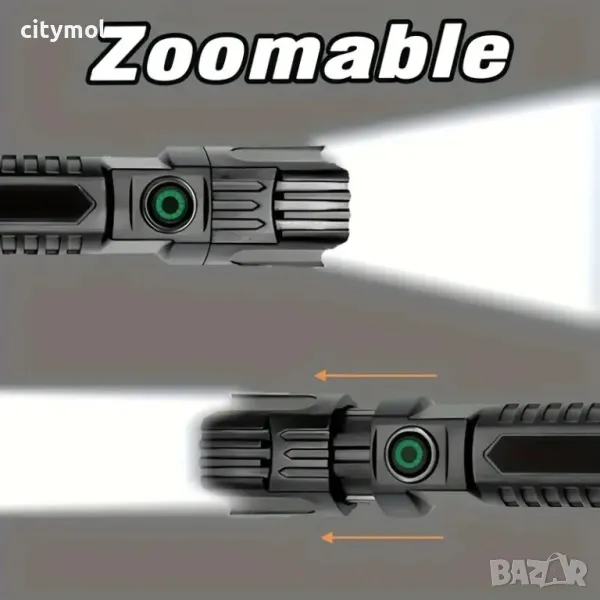 Акумулаторен CREE LED фенер с USB зареждане, ZOOM функция Много мощен фенер - прожектор с CREE R2 LED