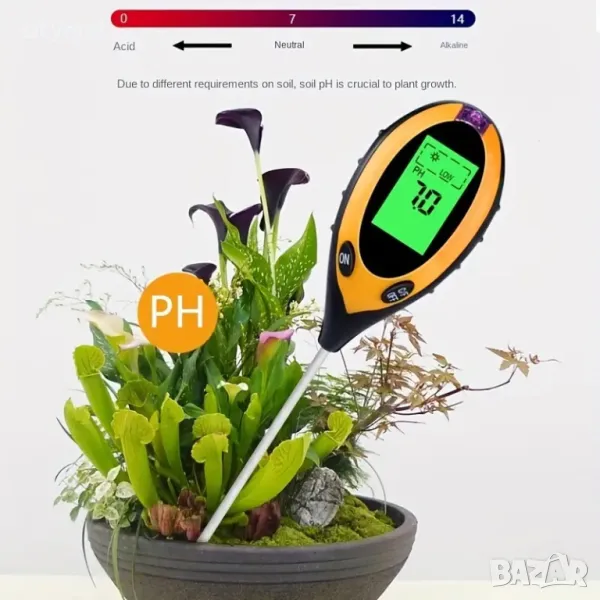 Устройството точно определя състоянието на почвата, като е истинска помощ, когато искате да отглеждате плодове и зеленчуци, защото ви помага да поддържате оптималните условия за вашите култури.