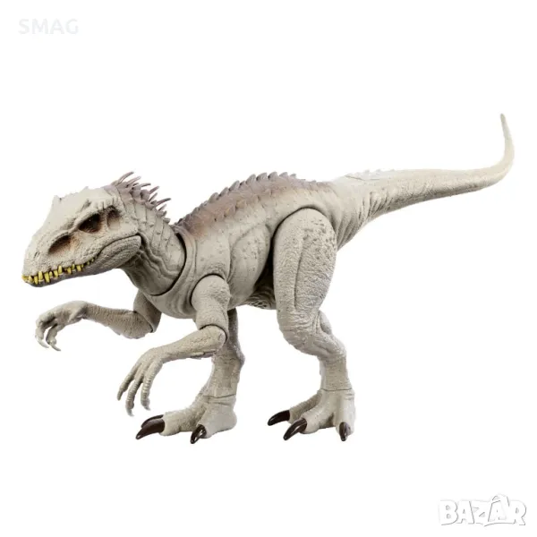 Новият Indominus Rex има светлинен камуфлаж, който се движи около тялото му и се активира с бутон! Неговата поява, светлина и рев пренасят действието на друго ниво! Този скандален зъл хибриден динозавър от Джурасик свят също атакува с челюстите си, контролирани от бутон на опашката му. Вдъхнете живот на динозавъра с помощта на добавена реалност! Сканирайте скрития ДНК код с вашето съвместимо смарт устройство (Android или iOS) и влезте в безплатното приложение Jurassic World Facts, за да отключите игри! Работи с 3 батерии тип AG13/LR44 1.5V.