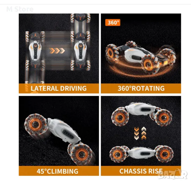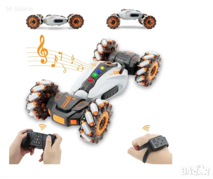 Кола с дистанционно управление, каскадьорска кола, RC разпознаване на жестове, 2,4 GHz 4WD, двупосочно шофиране, въртене на 360°, офроуд превозно средство, LED светлини и музика