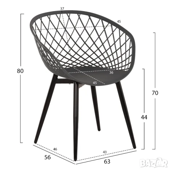 Кресло ARIADNE е качествено и елегантно на външен вид и определено привлича вниманието. Облегалката и седалката са едно цяло лято полипропиленово парче в цвят КАПУЧИНО. Гърбът всъщност е с "мрежеста" форма, което го прави приятен и лек. Основата на седалката и краката са метални в ЧЕРЕН цвят. Цялата конструкция е лека и удобна и ще се превърне в любимата седалка във всяко пространство, благодарение на своята практичност. Идеален избор и за професионална употреба, като например в кетъринга и др.