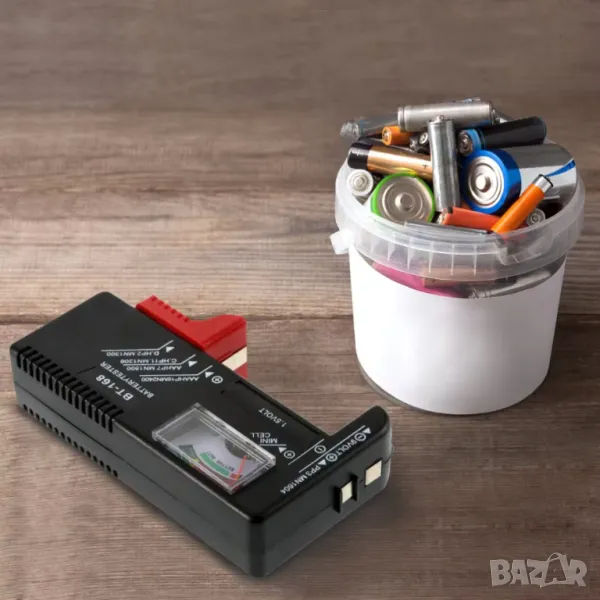Този аналогов тестер за батерии е предназначен за бързо и точно измерване на напрежението на различни типове батерии. С лесен за четене аналогов дисплей, той предоставя ясни показания на състоянието на батерията. Уредът е съвместим с батерии от 1,5V и 9V, което го прави универсален инструмент за ежедневна употреба.